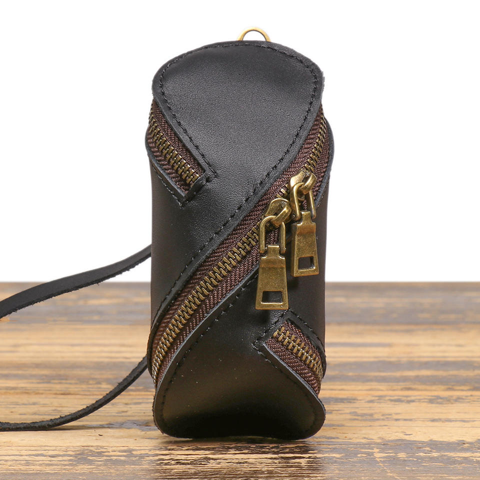 Men's Vintage Genuine Leather RFID Blocking Handbag Wallet Hand Painted Design Zippered Closure Nylon Canvas Portable Soft Carry