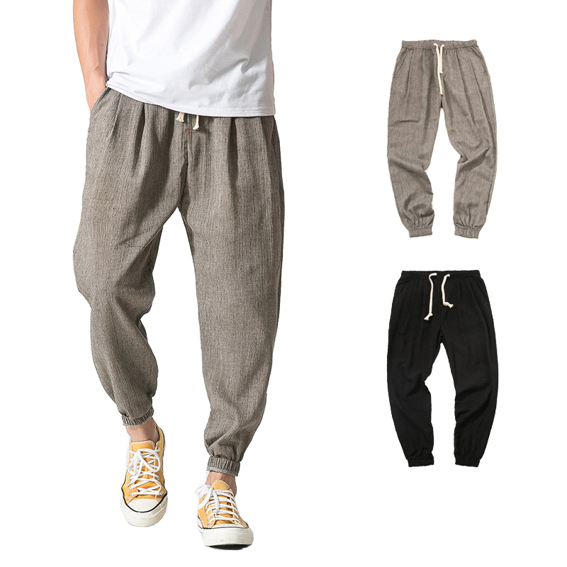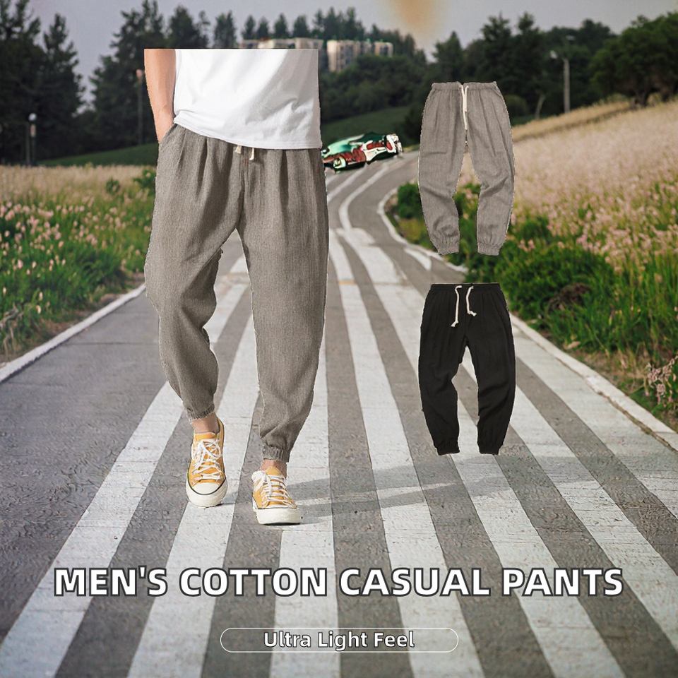 Men's Retro Summer Casual Pants Solid Color Plus Size Lightweight 100% Cotton Mid Waist Flat Worsted Breathable Quick Windproof