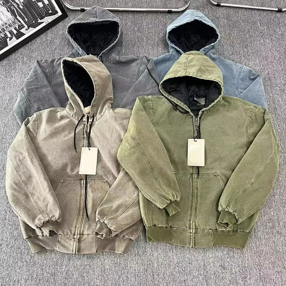 Men's Retro Washed Grey Sweatshirt Jacket, Suitable for Daily Wear, Y2K Hip-hop Street Retro Culture