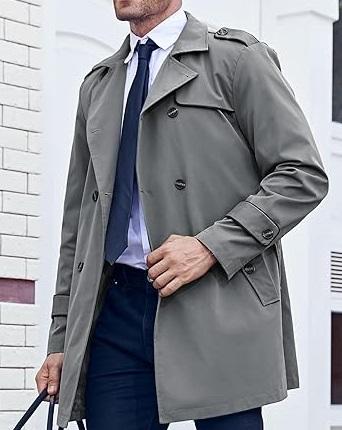 Men's Reversible Woolen Trench Overcoat Anti-Wrinkle Casual Outdoor Winter Double Breasted Belt Coat Office Business Workwear