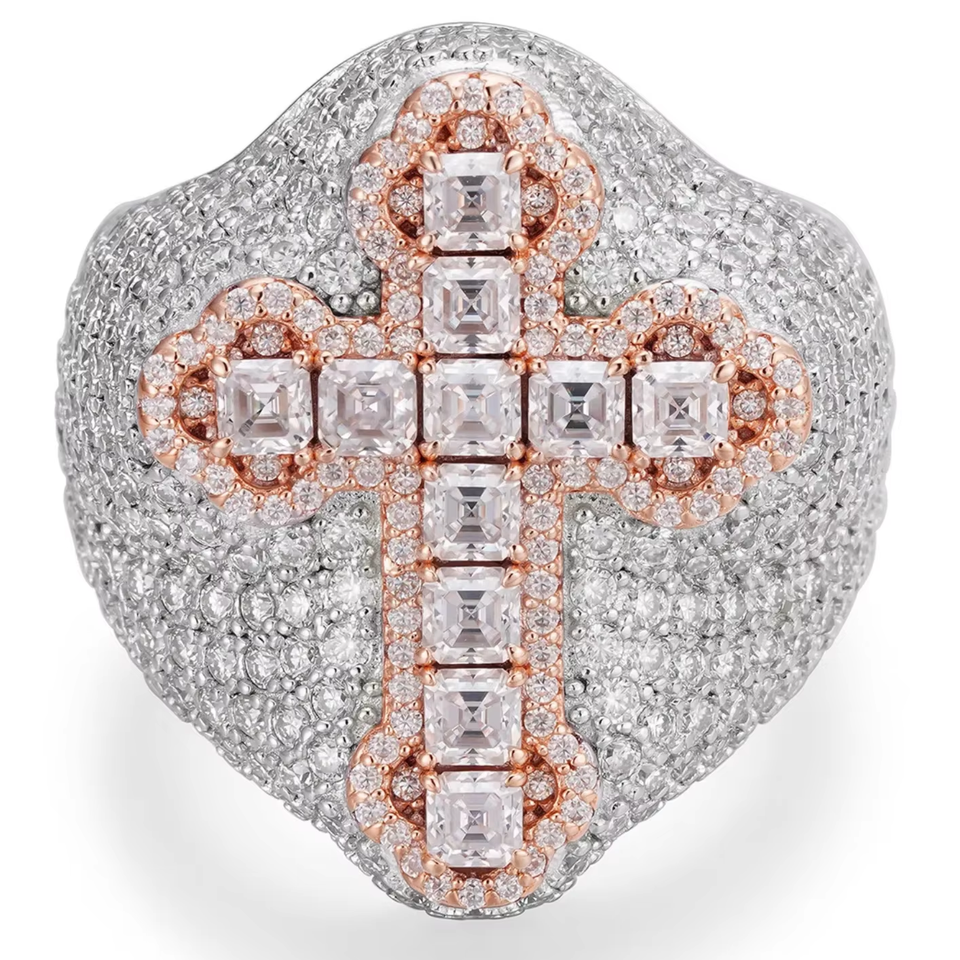 Men's Rhodium-Plated Prong-Set Princess Cut Moissanite and S925 Sterling Silver Ring Hip-Hop Style