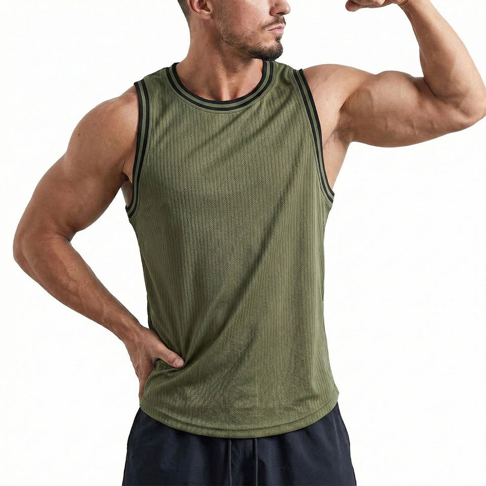 Men's Ribbed Muscle Fit Tank Top Custom Logo Sleeveless Fitness Striped Neckline Gym Sportswear Athleisure Wholesale Tank Tops