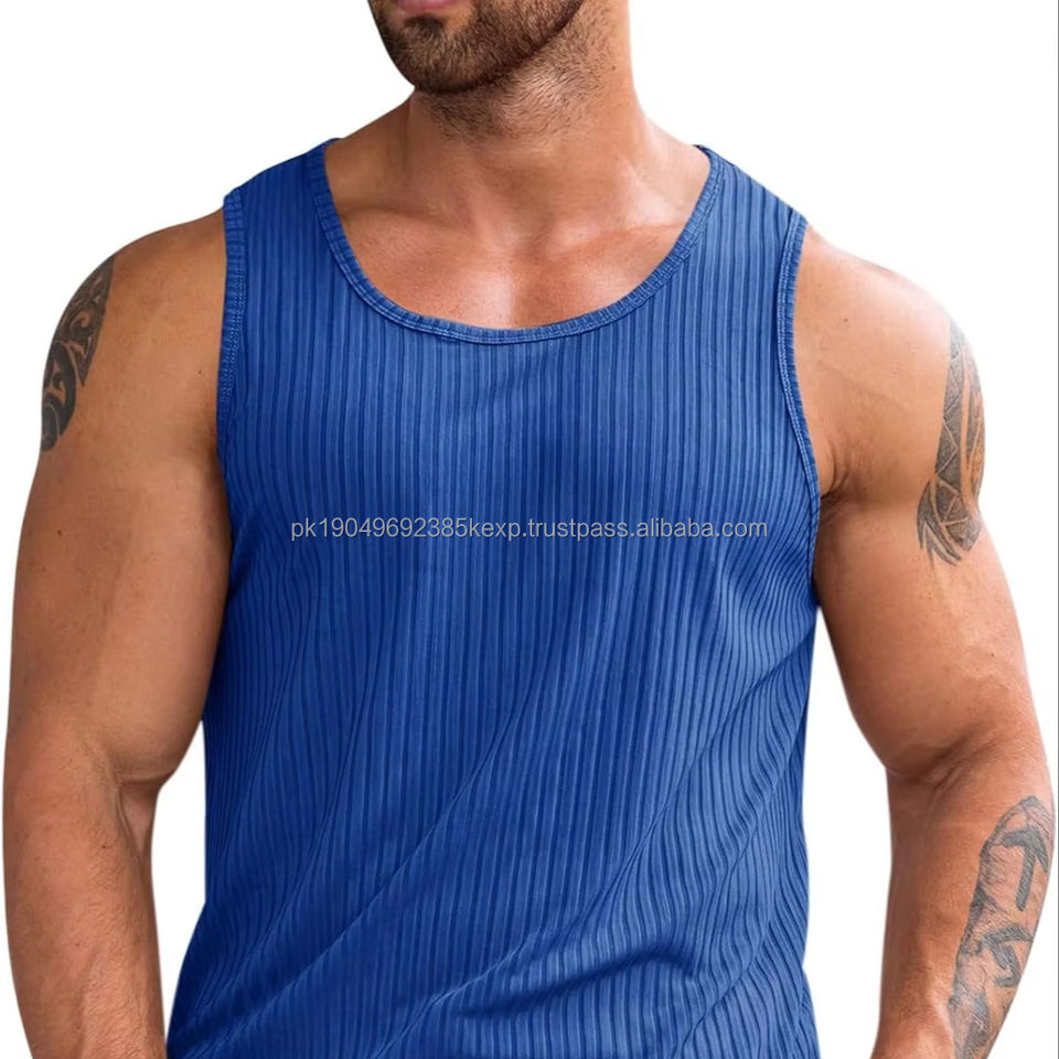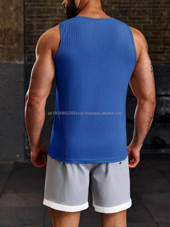 Men's Ribbed UPF 50+ Quick Dry Tank Top Summer Workout Muscle Sleeveless Shirts Plus Size for Swim Beach Bodybuilding