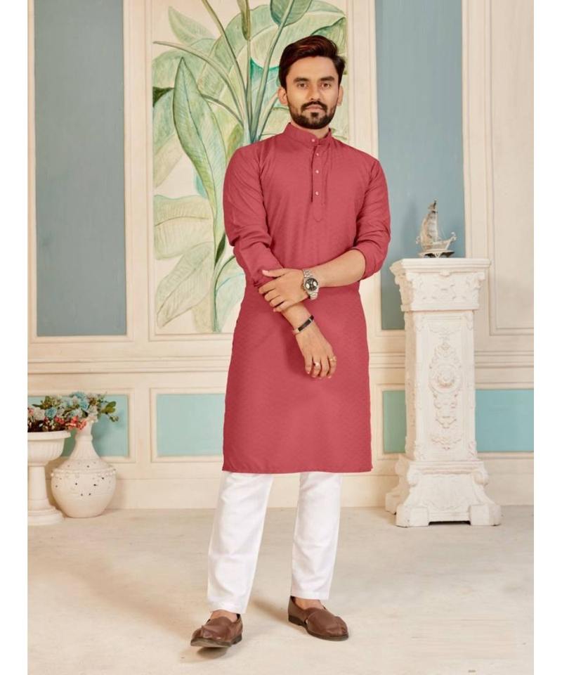 New Trending ThobeKurta for Men in Punjabi Pathani Style With Collar Neck Button and Chain Cotton Pajama Set