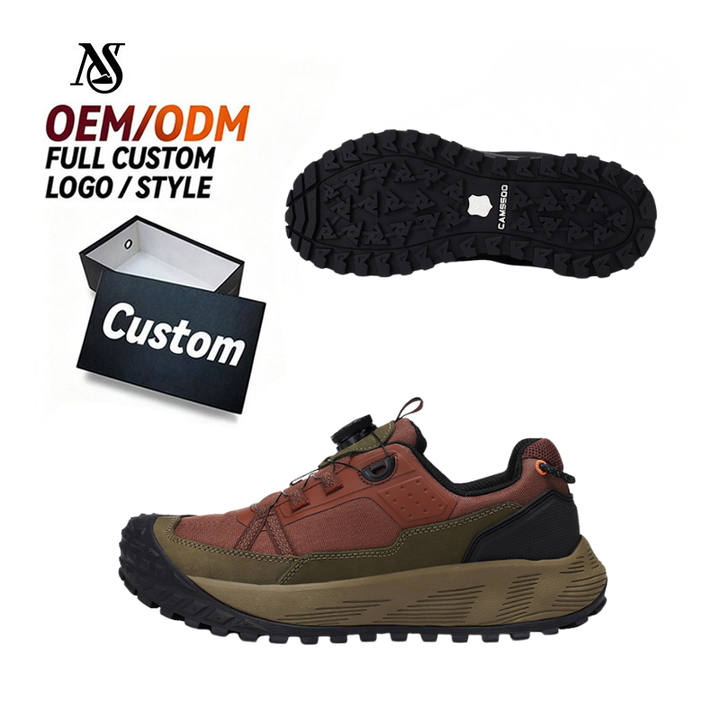 Men’s Rotating Buckle Auto-Lace Outdoor Shoes Leather Waterproof Breathable Sports Running & Hiking Shoes