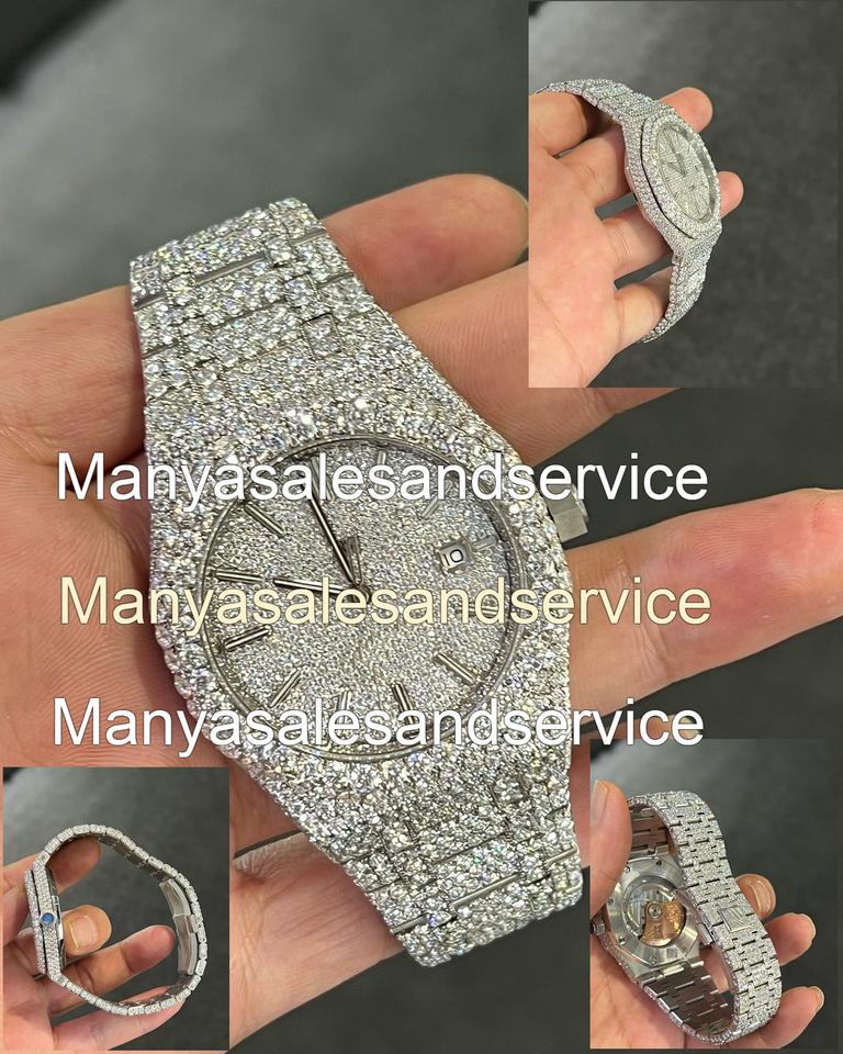 Men's Round Dial Quartz Watch with Glass Crystal Moissanite & Stainless Steel Case 10 Bar Water Resistant Bracelet Clasp Gift