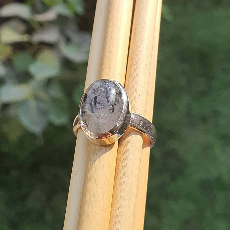 Natural Black Rutilated Quartz Sterling Silver Men Women Ring