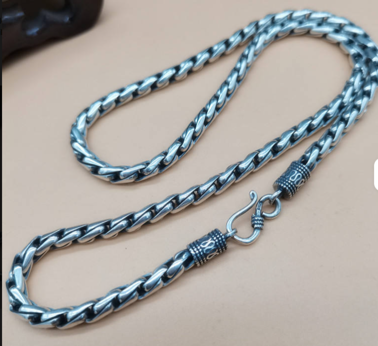 Men's S925 Punk Jewelry Necklace 100% Pure Sterling Silver Vintage Silver 925 Rope Chain 100% Pure Weaving Personality Gift