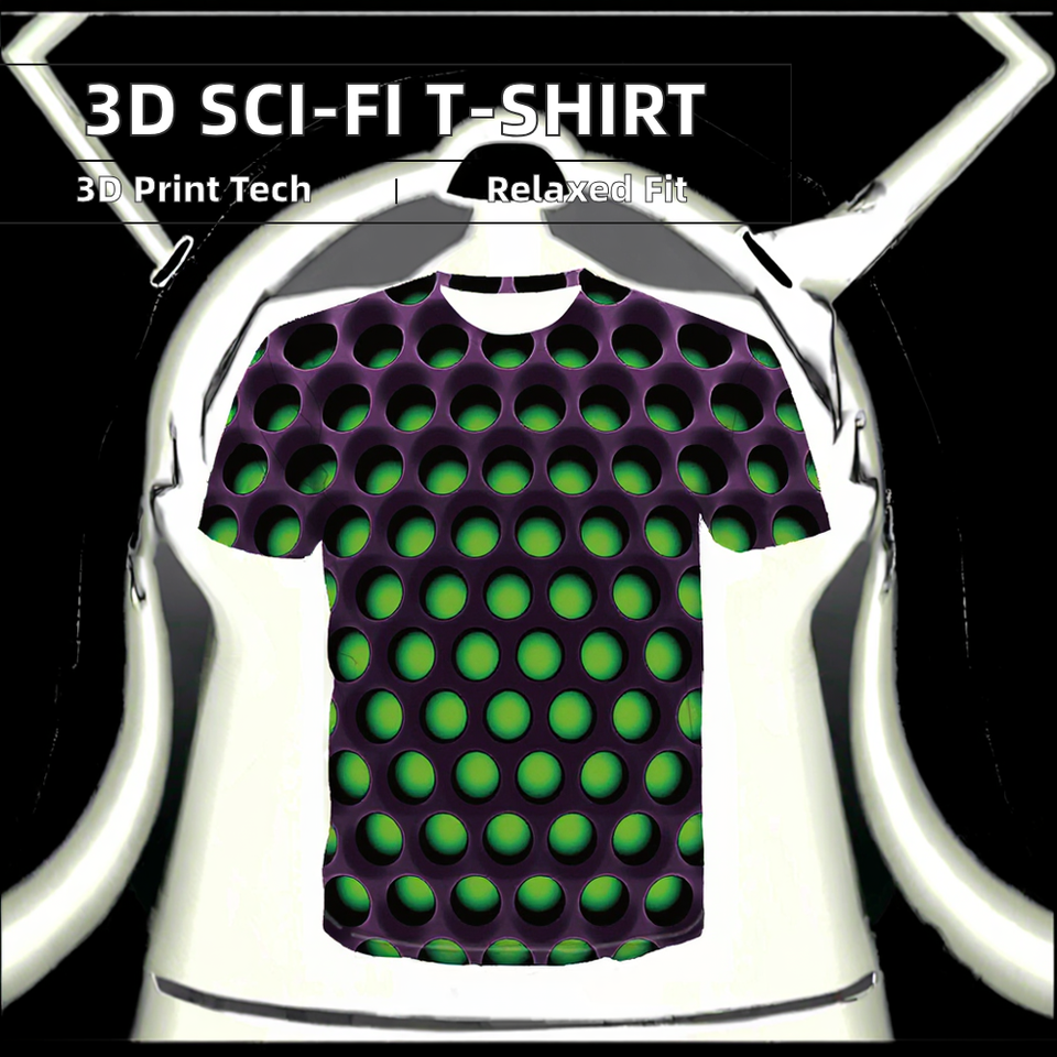 Men's Sci-Fi 3D Printed T-Shirt Acid Wash Animal Pattern on 180g Fabric Woven Short Sleeve Loose Fit for Polo