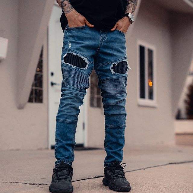 Men's Selvage Denim Jeans Pants Stretch with Splashes Skinny Slim Distressed Men Jeans 2025