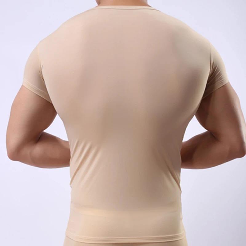 Men's Sexy Fitness Bodybuilding Underwear Sheer Undershirts Breathable 100% Cotton Ice Silk Mesh See-Through Basics Garment Dyed