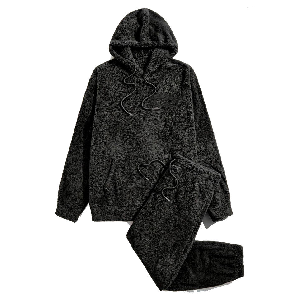 Men's Sherpa Fleece Solid Oversized Hoodie and Jogging Pants Set Four-Way Stretch Casual Loose Teddy Unisex Design for Winter