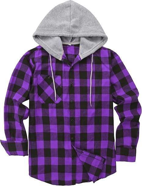 Men's Shirts Classic Plaid Casual Button Down Hooded Long Sleeved Pockets Shirt Hoodie Flannel Shirt for all Season Men's Tops