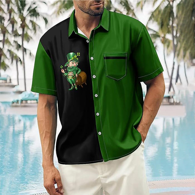Men's Short Sleeve Button Down Bowling Shirts Hawaiian Casual Printed Summer Regular Fit Beach Aloha Shirt
