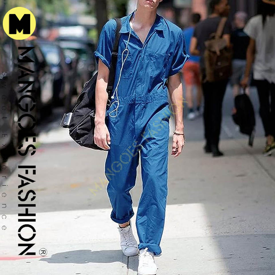 Men's Professional Short Sleeve Work Jumpsuit Zip-Front Coverall Multi-Pockets Wrinkle-Resistant Waterproof Customizable Logo