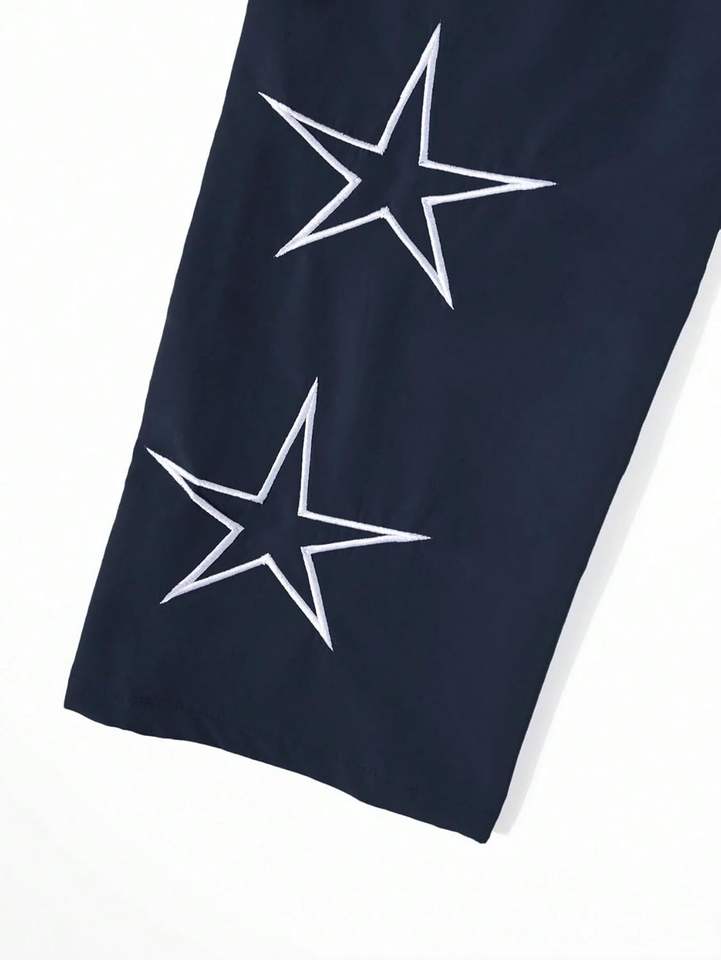 Men's Side Star Casual Trousers Y2K Lightweight Sweatpants with Drawstring for Dance, Baggy Fashion Straight Leg Design