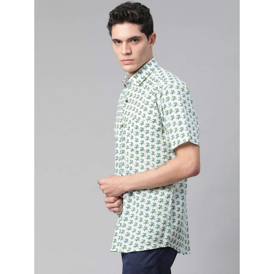Men's Sky Blue & Teal Cotton Half Sleeve Shirt Classic ODM Casual Style Collarless XL & 3XL Sizes Available-MMH0178
