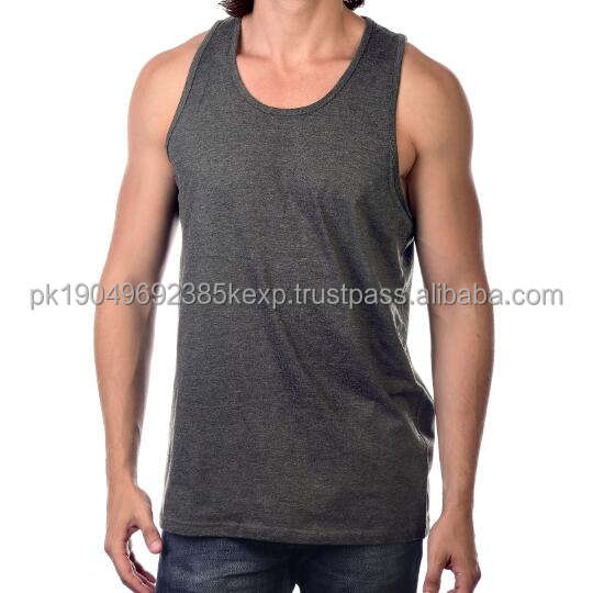 Men's Sleeveless Gym Wear tank Tops 100%cotton Singlet for Wholesales