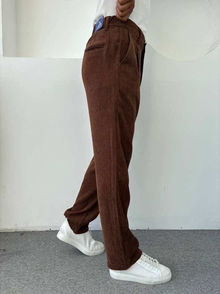 Men's Slim Fit Brown Dress Pants Casual Office Trousers Comfortable Lightweight Cotton Mid Hip Hop Waterproof for Business Daily