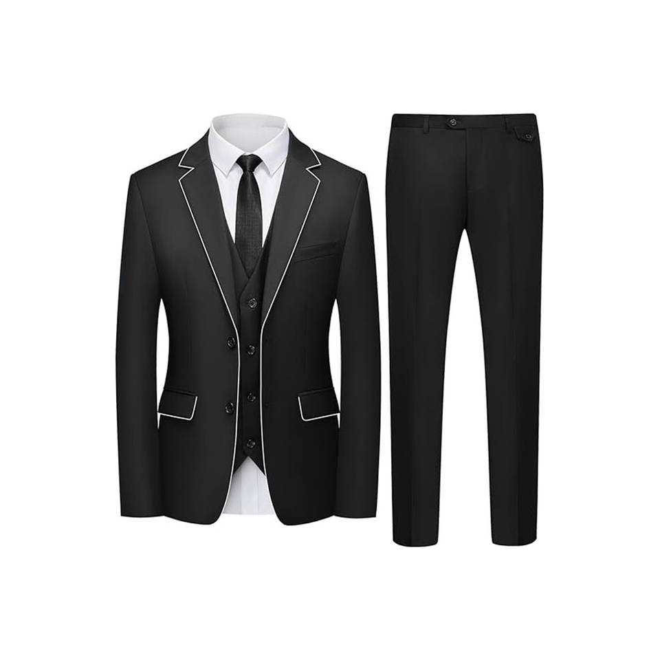 Men's Slim Fit Custom Double Breasted Mandarin Collar Wedding Suit with Crocheted Weave