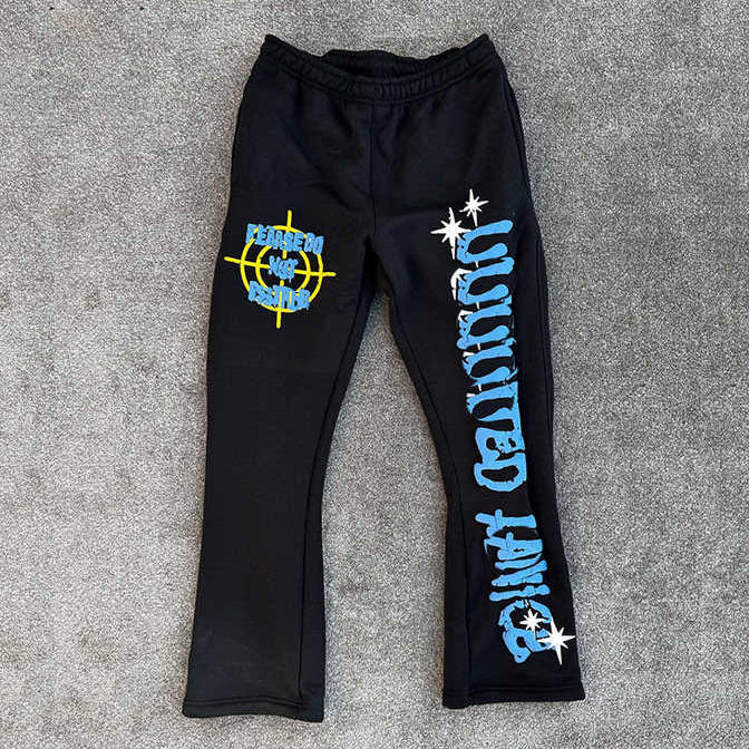 Men's Slim Fit Distressed Embroidery Patch Flared Joggers Stacked Sweatpants with Elastic Waist Hip Hop Style