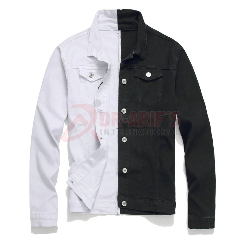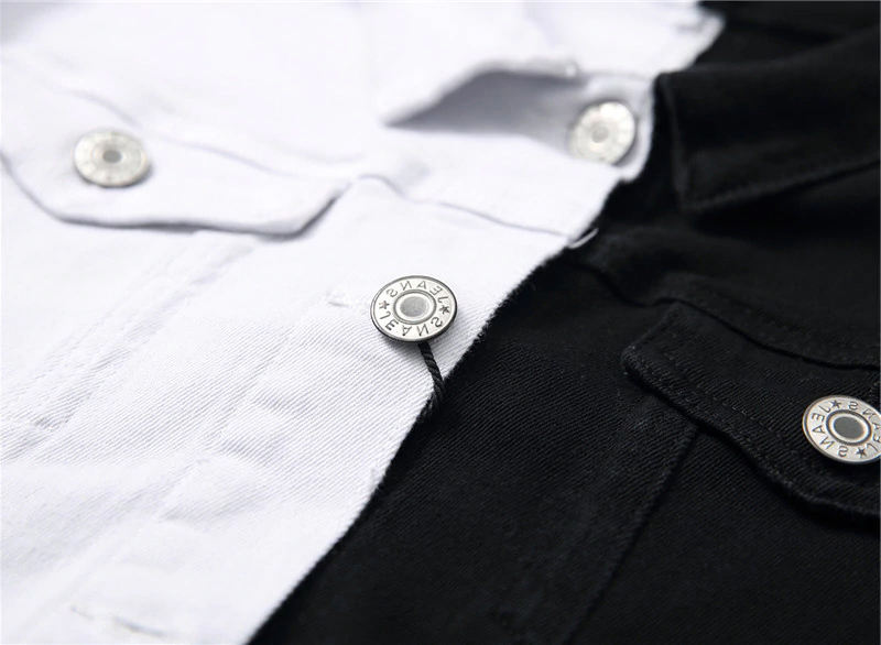 Men's Slim Fit Jean Jackets Cotton Casual Denim Black White Two-Tone Patchwork Streetwear Motorcycle Man Hip Hop Style Casual