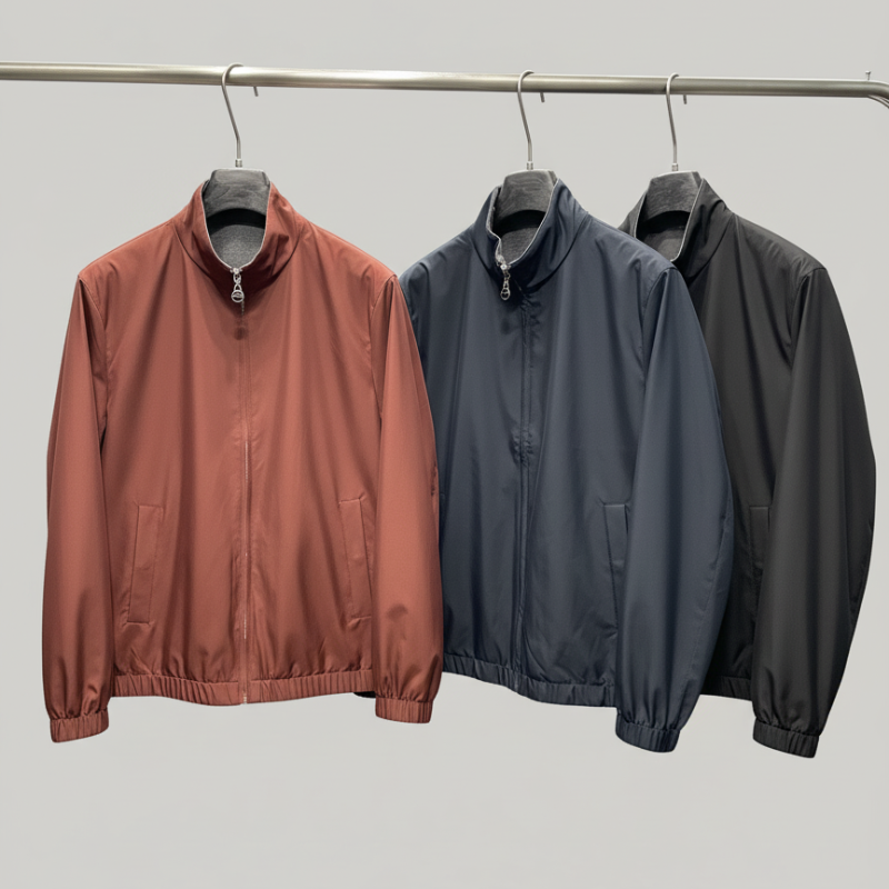 Men's Slim Fit Reversible Vintage Motorcycle Jacket Windproof Eco-Friendly Anti-Bacterial Cashmere Lined Casual Turtleneck Front