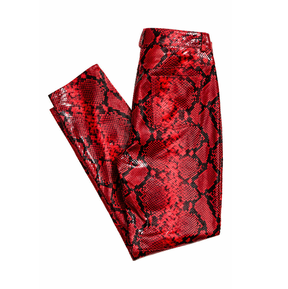 Men's Slim Fit Snakeskin Leather Pants Breathable Casual Style with Flat Front Logo on Waist for Winter Streetwear