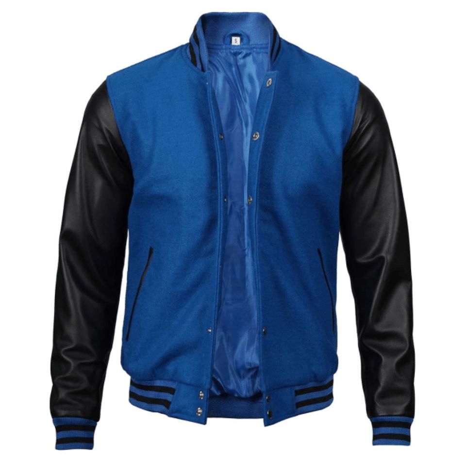 Men's Slim Fit Varsity Jacket Wool Blend Lantern Sleeve Embroidered Letters Winter Streetwear Sheep Fur Trim Outerwear