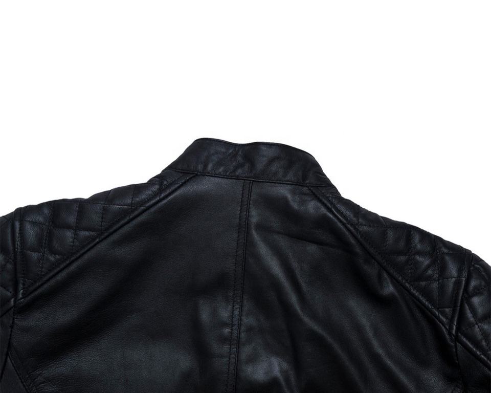 Men's Slim Fit Vintage Cow Skin Leather Biker Jacket Stand Collar Winter Season Black Color