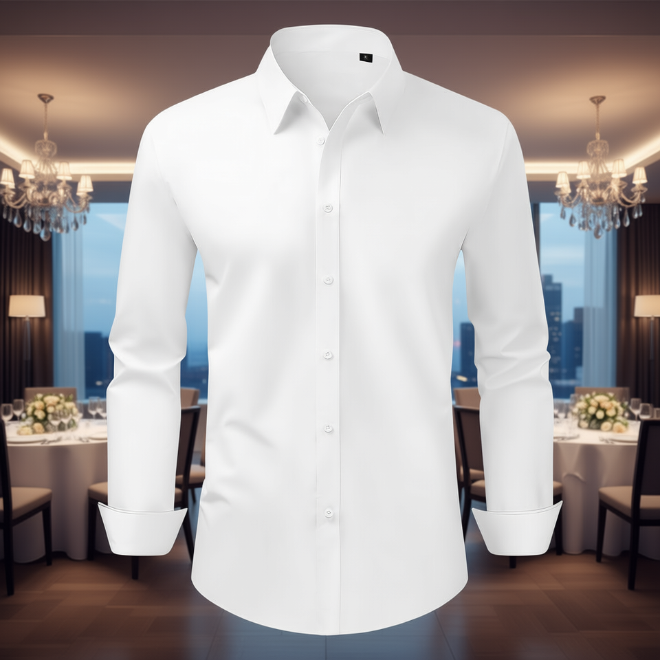 Men's Slim Fit White Dress Shirt Long Sleeve Soft Stretch Fabric Business Casual Formal Work Wedding Dinner