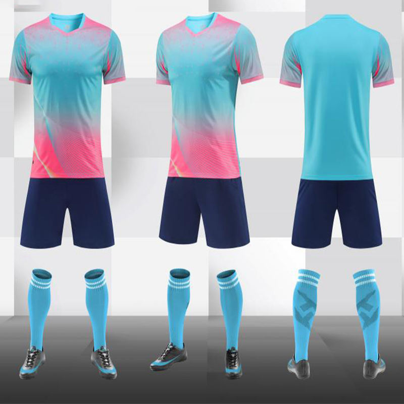Men's Soccer Kit Set Automated Cutting Football Jersey Socks 100% Polyester Quick Dry Breathable Summer Short Sleeve Sports Wear