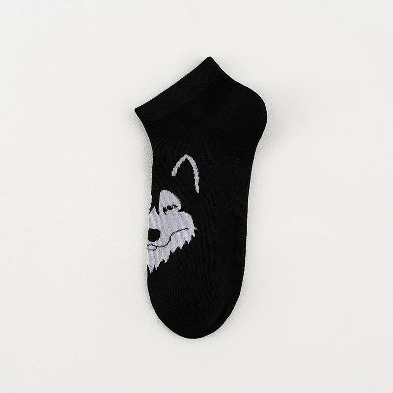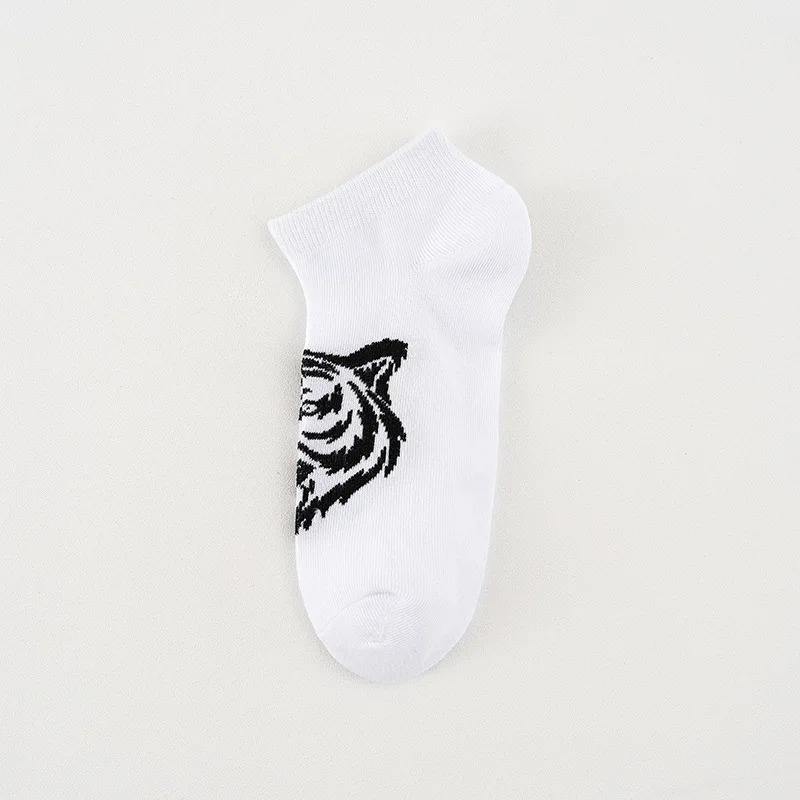 Men's Socks Cotton Animal Print College Style Cartoon Black White Panda Lion Eagle Tiger Wolf Sports Short Socks Hip Hop Man