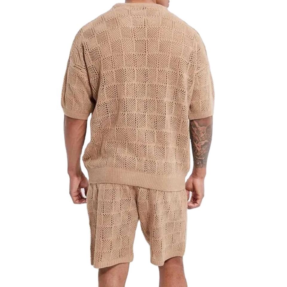 Men's Solid Color Casual Short Sleeve Knit T-Shirt Shorts Suit Wholesale Breathable Summer Street Wear 100% Polyester Customized