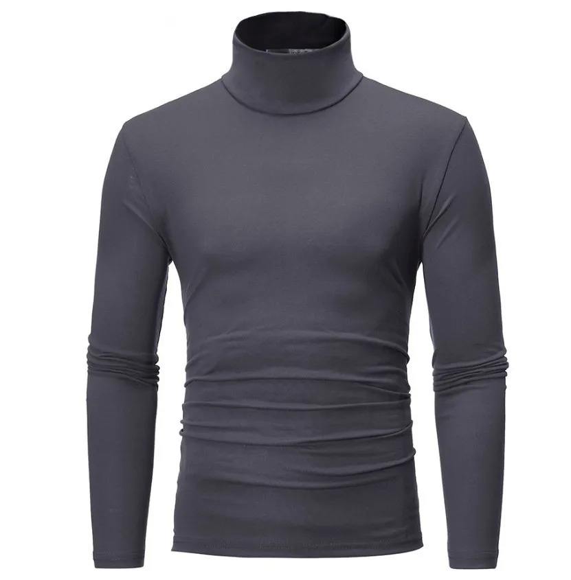 Men's Solid Color Turtleneck T-Shirt For Male Autumn Spring Casual Long Sleeve Basic Bottoming Shirt For Men Slim-Fit Tops