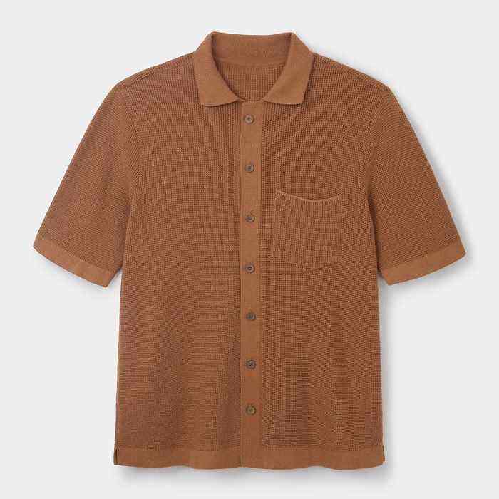 Men's Solid Knit for Shirt One Front Pocket Button Placket Waffle Texture Oversize T-Shirt