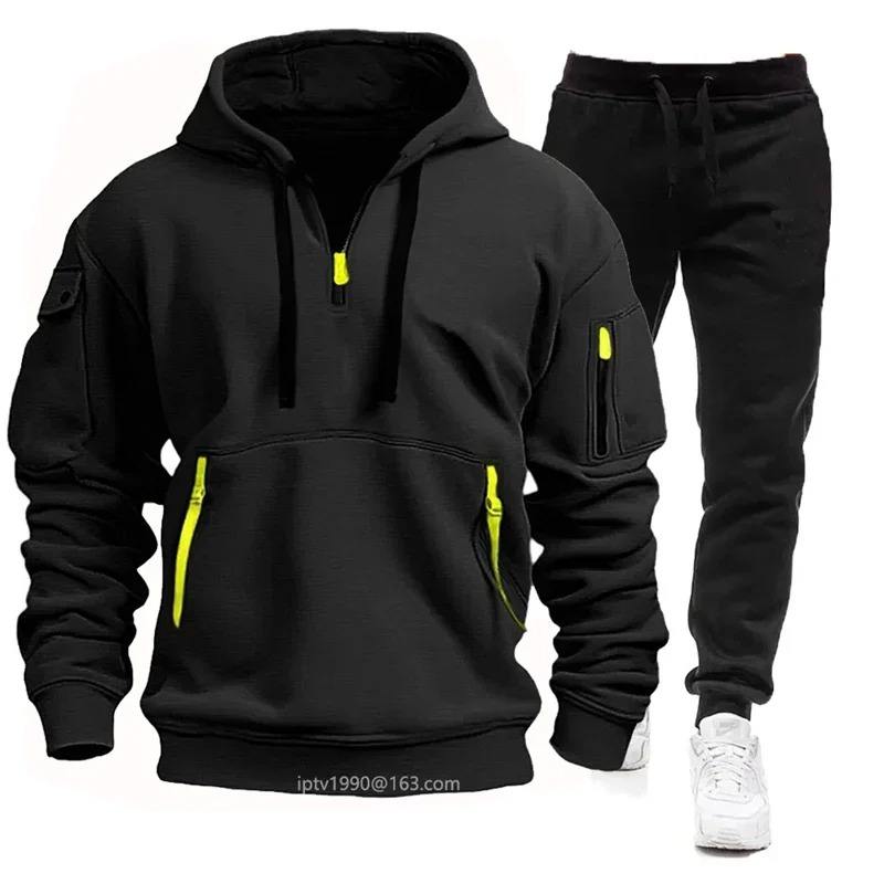 Men's Sports Suit, Hooded Sweatshirt and Zippered Sweatpants, Multiple Pockets, Spring and Autumn