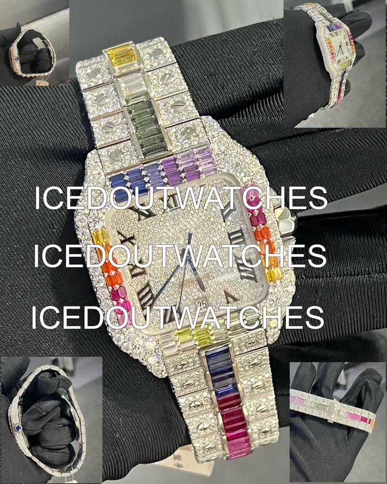 Men's Square Case Stainless Steel & Moissanite Band Iced Out Watch with Bracelet Clasp 10 Bar Water Resistance Glass Dial