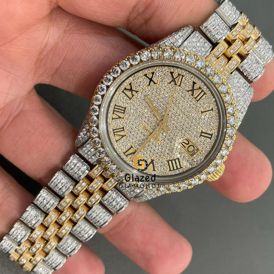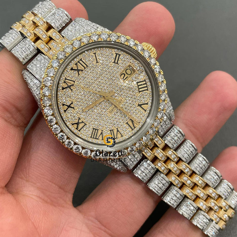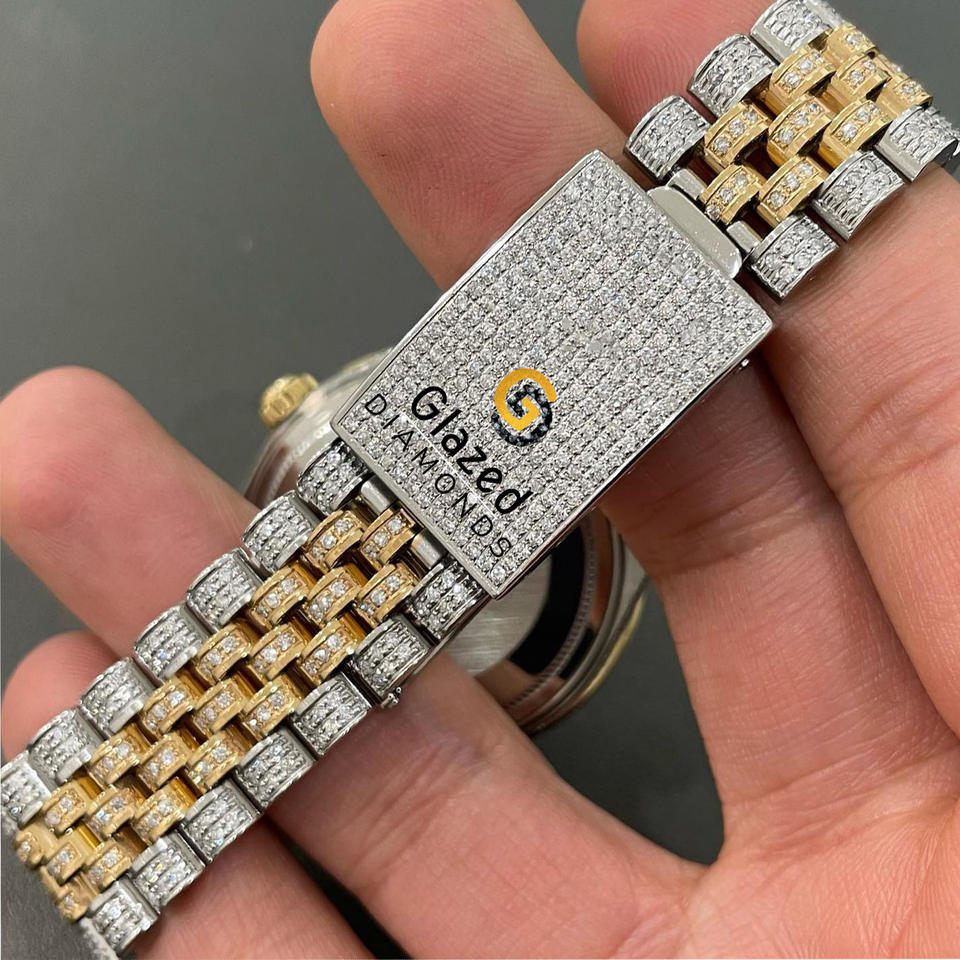 Men's Stainless Steel Analog Wrist Watch Hip Hop Style Fully Iced Brilliant Cut Lab Grown Diamond Glass Dial Window Date Display