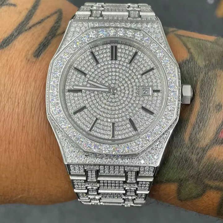 Men s Stainless Steel Octagonal Moissanite Diamond Watch Hip Hop Style Business and Sport Fashion Quartz Movement Luxury Wristwa
