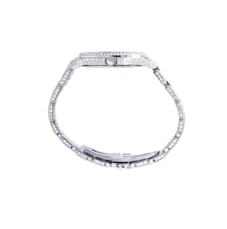 Men's Stainless Steel Quartz Automatic Movement Mechanical Square Dial Antique Fashion Hip Hop Style Fully Iced Silver Watch