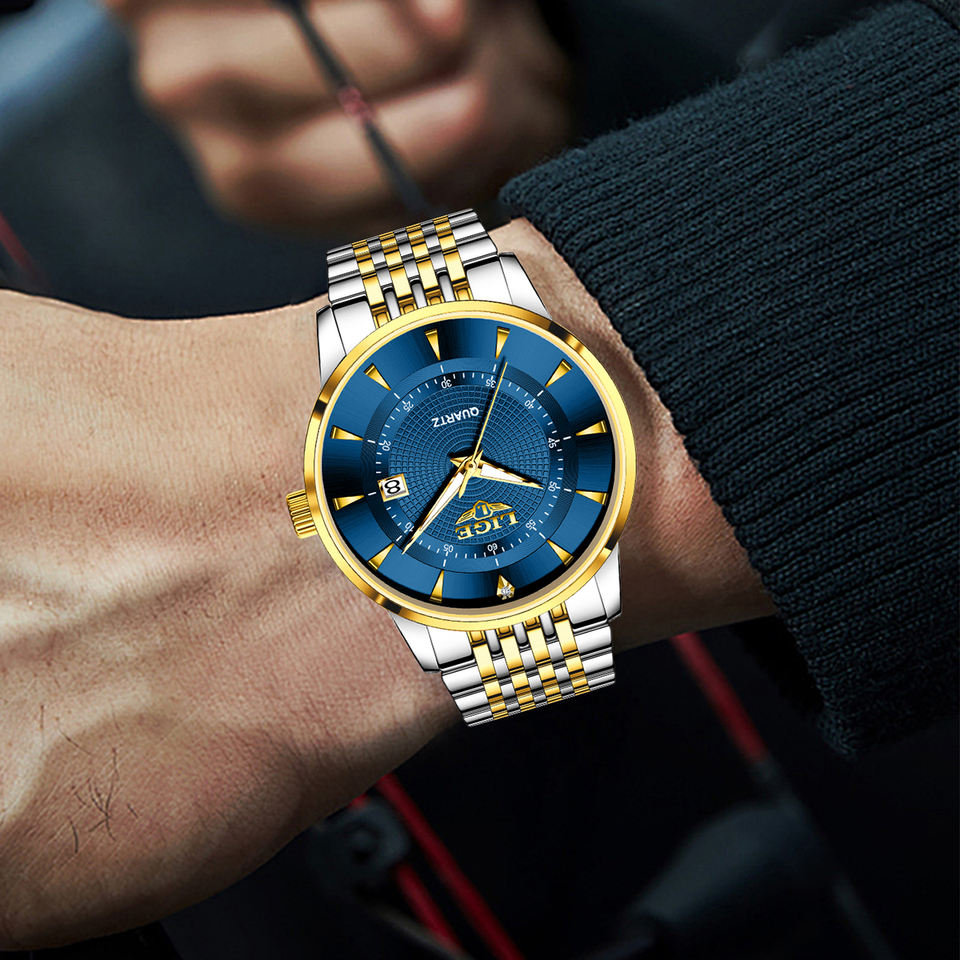 Men's Stainless Steel Quartz Wrist Watch Pointer Calendar Business Fashion Waterproof 3BAR Watch Wholesale Customization Logo