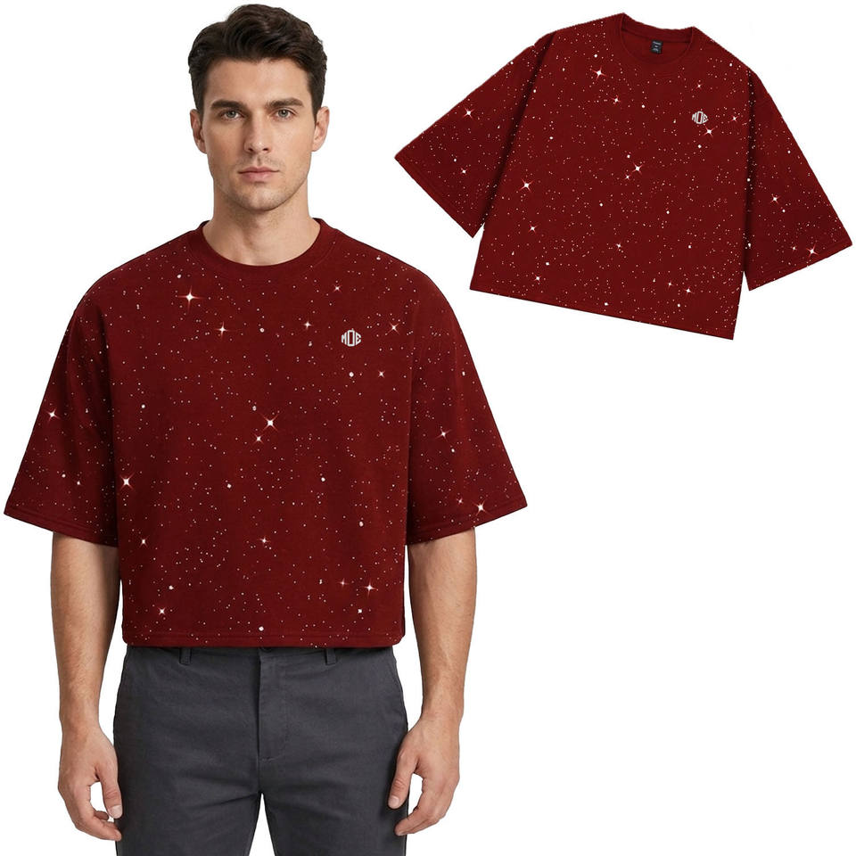 Men's Starry Rhinestone Transfer Short Sleeve T-Shirt Loose Fit Cotton Men's shirts Oversized Crew Neck Casual Tops Wholesale