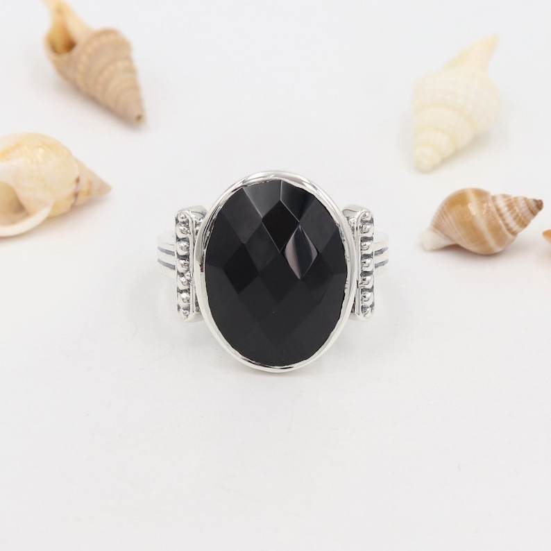 Men's Sterling Silver Statement Ring with Black Onyx Gemstone Bezel Setting for Wedding or Party Gift for Him