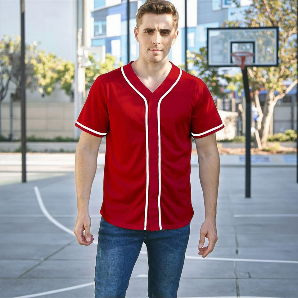 Men's Street Style Baseball Jerseys Button-Down Short-Sleeved Shirts Uniform Knitted T-shirts with Screen Baseball Jersey