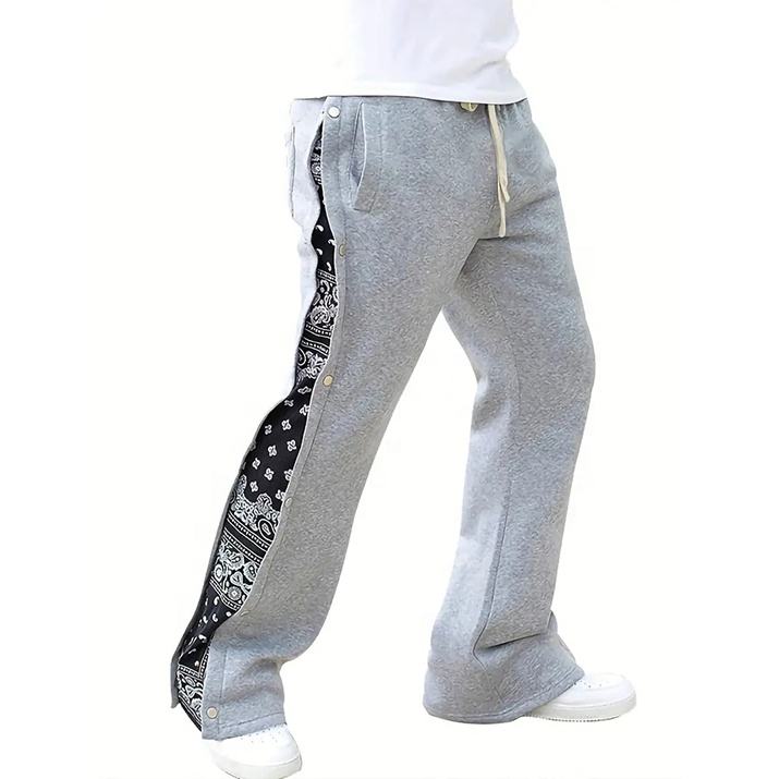Men's Winter Streetwear Paisley Pattern Joggers Loose Fit Wide Leg Drawstring Sweatpants with Custom Logo Canvas Bottoms Trouser