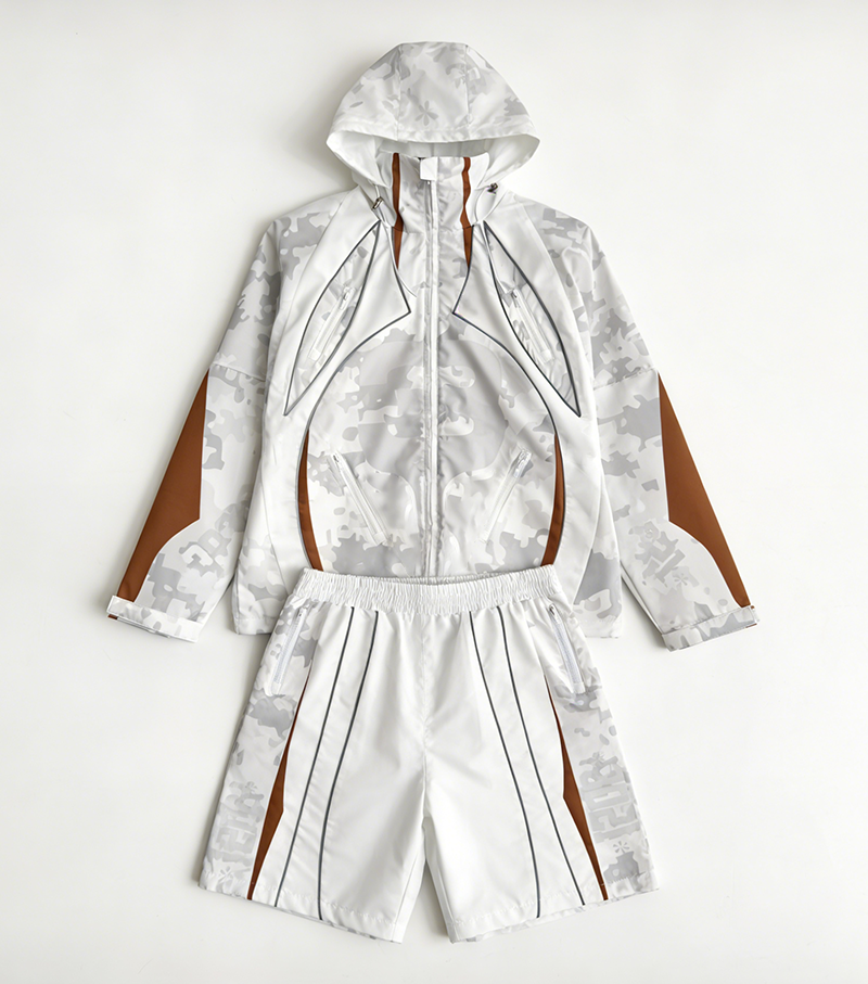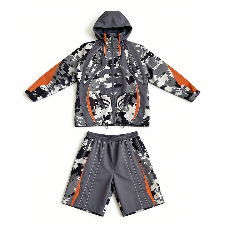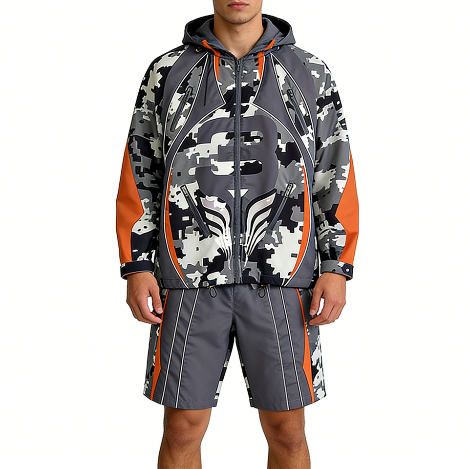 Men's Streetwear Tracksuits Custom Print Windproof Quick Dry Hooded Zip Jacket Shorts Set Breathable Lightweight Activewear