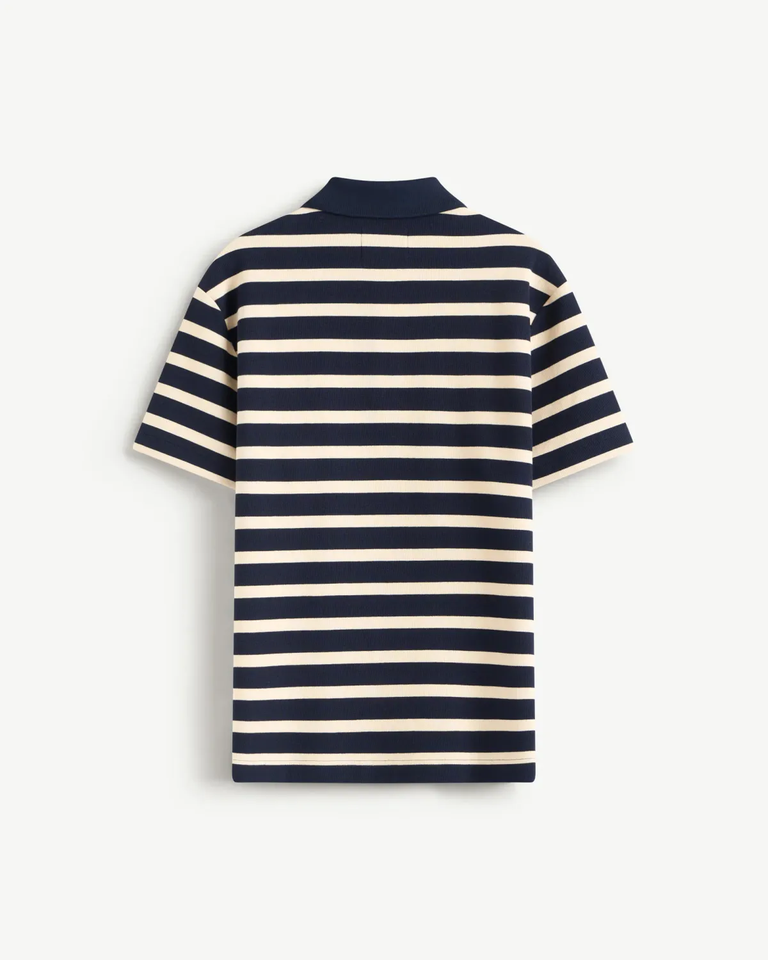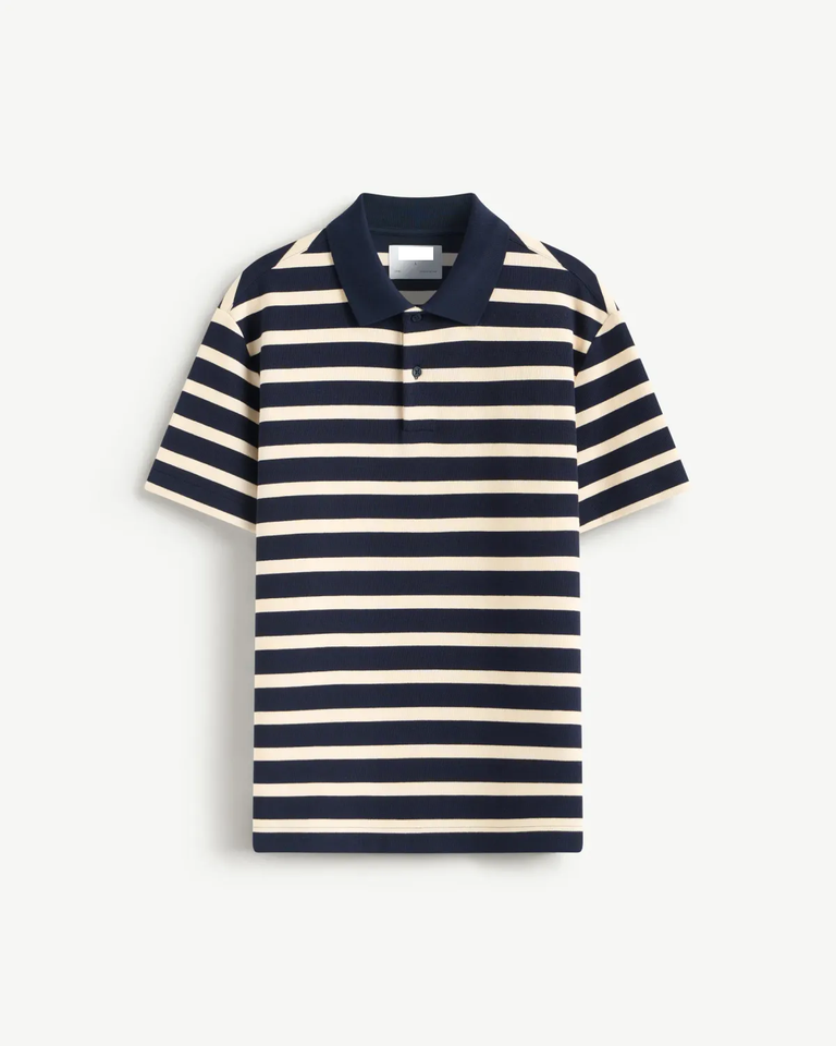 Men's Striped Polo Shirt with Front Logo Breathable Knitted Fabric Solid Pattern and Collar Formal Style ODM Supply