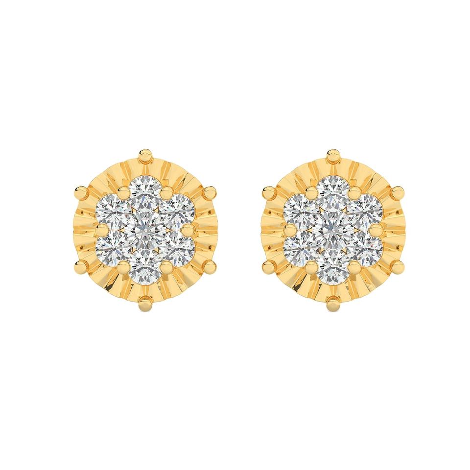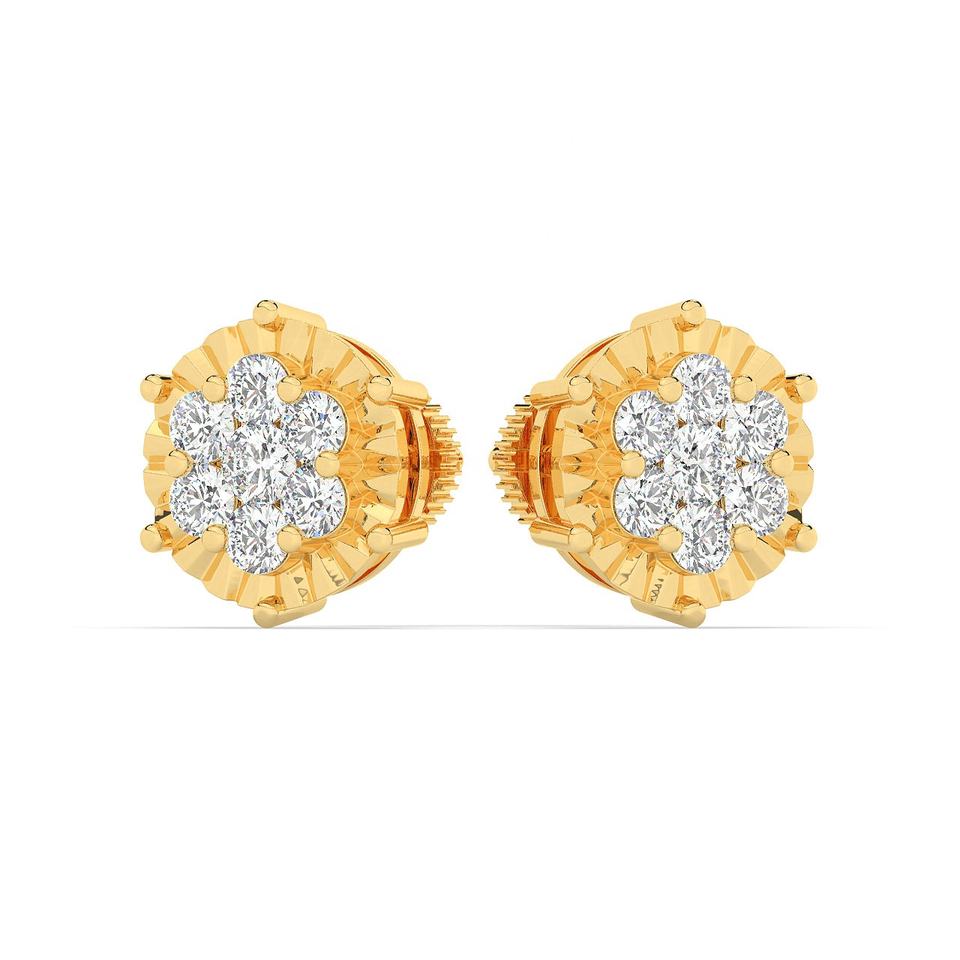 Round Cluster Diamond Stud Earrings, Screw Back Lab Grown Diamond Stud Earrings, Solid 14k yellow Gold Jewelry