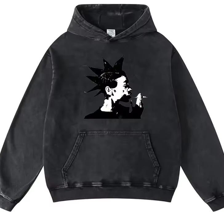 Men's Style Hoodie Trendy Hip Hop Printed Pullover Washed Cotton Winter Lined Fleece Knitted